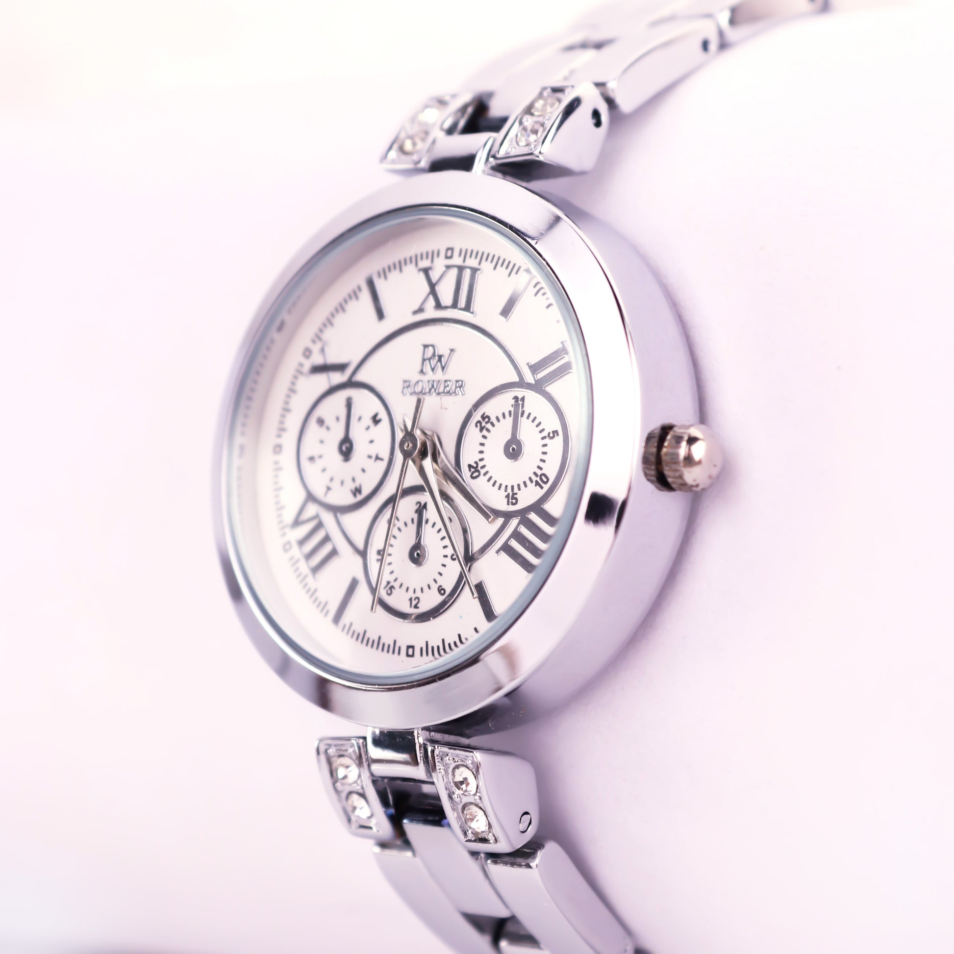 Where refined style meets everyday versatility, the Rower Silver Chronograph delivers sophistication with a touch of sparkle. Featuring a polished silver-tone stainless steel case and bracelet, accented with shimmering crystals on the lugs, this timepiece makes a subtle yet striking statement. The silver dial is adorned with bold Roman numerals, three functional sub-dials, and precision quartz movement for reliable timekeeping.